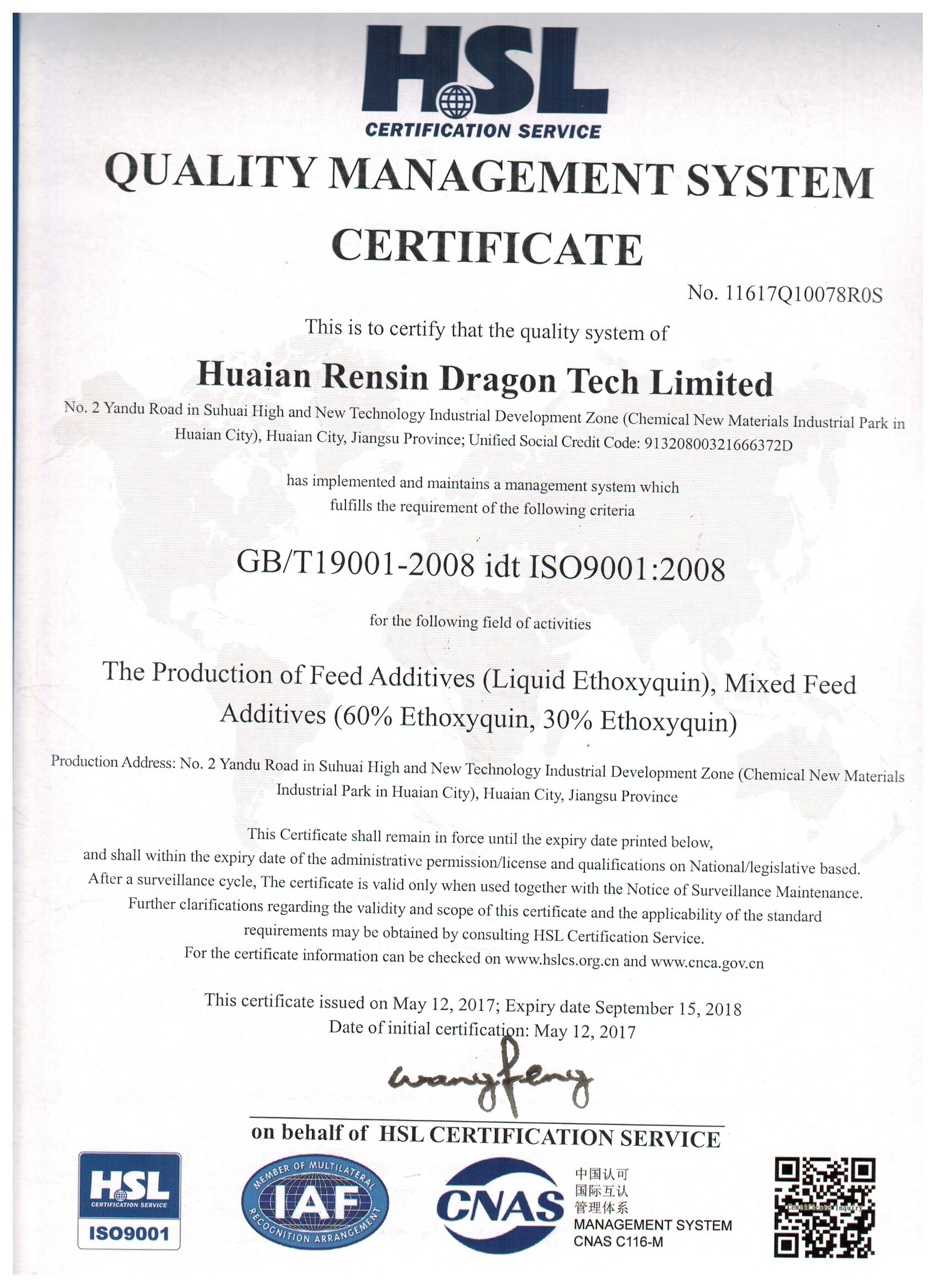 潤龍科技乙氧基喹啉自投產(chǎn)以來,生產(chǎn)穩(wěn)妥、安全、質量可靠,生產(chǎn)理念堅持走全球一體化道路,所投產(chǎn)的產(chǎn)品全部基于國際質量水平的技術基礎之上實施,主營產(chǎn)品“乙氧基喹啉”已家喻戶曉,暢銷亞洲、歐洲、南美洲、北美洲、大洋洲等30多個國家和地區(qū),年出口占比高達80%以上。同時,與國內(nèi)多家百強企業(yè)形成強力的合作關系。